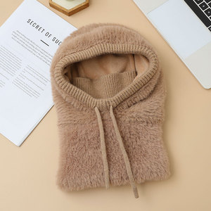 女士保暖围脖连体面罩帽秋冬季户外骑车套头一体帽东北滑雪防风帽