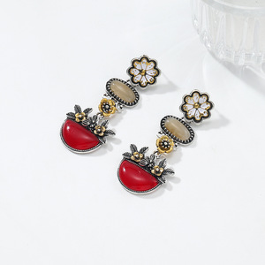 ZA欧美夸张大牌花瓣多层吊坠耳环金银拼色波西米亚风耳饰跨境货源