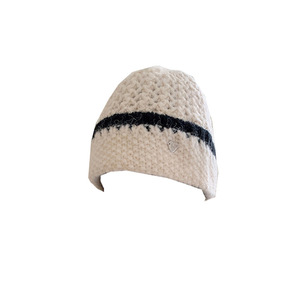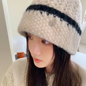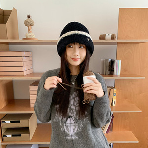 批发韩国2025年早秋新款时尚百搭撞色条纹毛线帽保暖显脸小针织帽