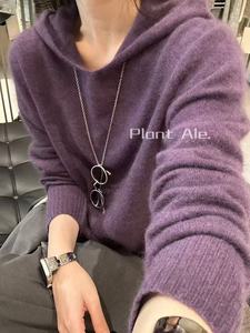 韩系高级感软糯山羊绒连帽毛衣一95%羊毛休闲针织打底衣女P5091