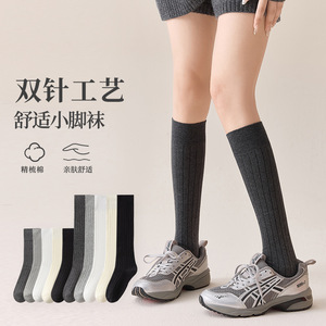 袜子女秋冬小腿袜JK 黑色双针吸湿中高筒韩版显瘦深灰色长筒袜女