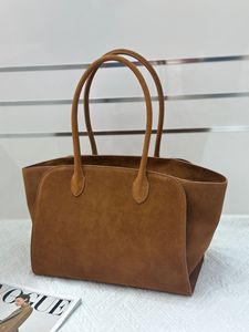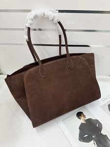 The row 新款marlo14头层磨砂麂皮大容量通勤牛皮女士手提托特包