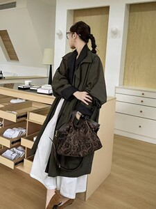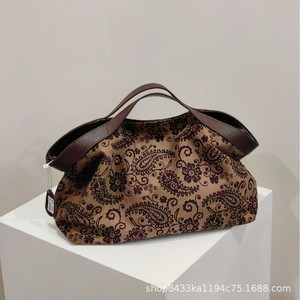 早秋2025新款复古文艺印花托特女包休闲通勤大容量可手提单肩斜挎