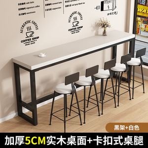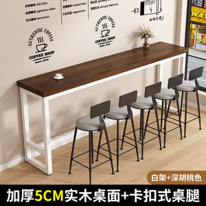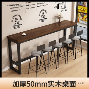 实木吧台桌家用阳台休闲小户型奶茶店酒吧靠墙长条桌椅高脚窄桌子