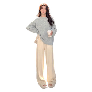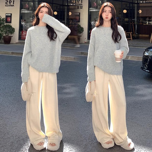 现货孕妇针织阔腿裤毛衣两件套秋冬百搭休闲裤垂感直筒拖地长裤
