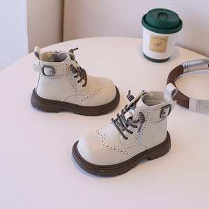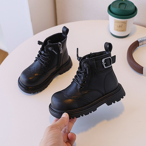 儿童靴子2025新款秋冬女童马丁靴男童英伦风皮靴小童单靴软底