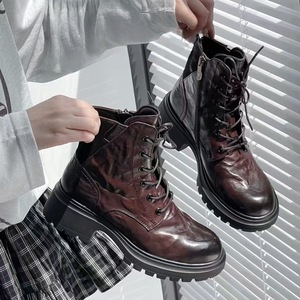 欧洲站女鞋2025秋冬新款真皮英伦风复古系带马丁靴女厚底短靴切尔