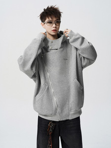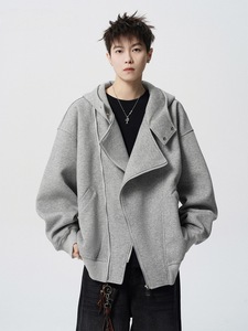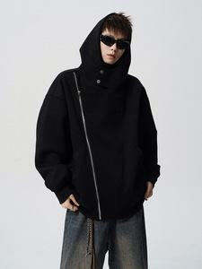 设计感双拉链开衫卫衣男秋美式潮牌百搭情侣外套重磅宽松连帽夹克