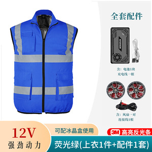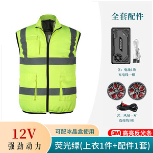12V荧光绿拼藏青遮光隔热马甲全套配件