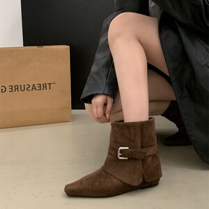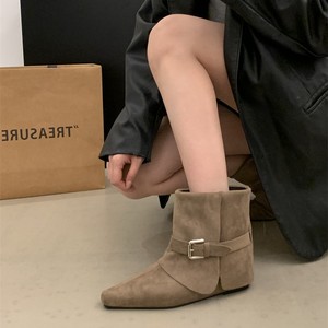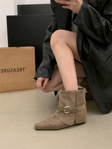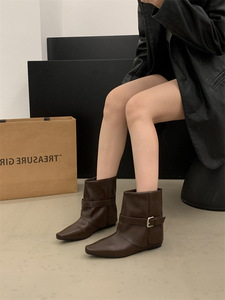 法式复古美拉德小众尖头短靴女瘦瘦单鞋2025秋新款马丁靴女款裸靴