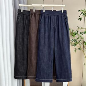 秋季新款大码遮肉明线松紧腰牛仔裤200斤胖妹妹休闲直筒长裤8122