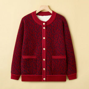 2025妈妈洋气加绒加厚毛衣中年时尚开衫上衣女秋冬季时尚针织外套