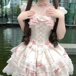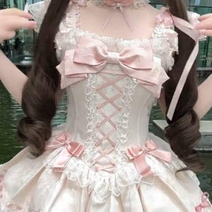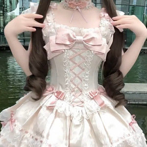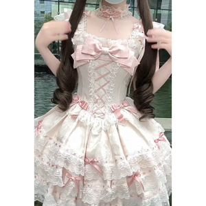甜美洛丽塔蝴蝶结吊带连衣裙夏季新款气质收腰公主蓬蓬裙女蕾丝