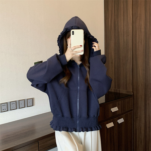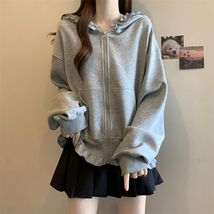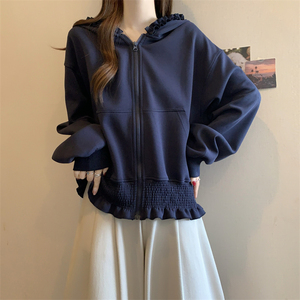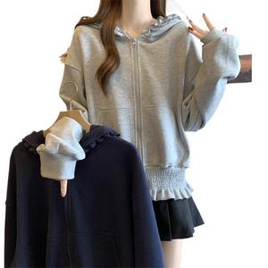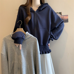 大码微胖休闲复古连帽卫衣女装春季时尚开衫外套胖MM宽松显瘦上衣
