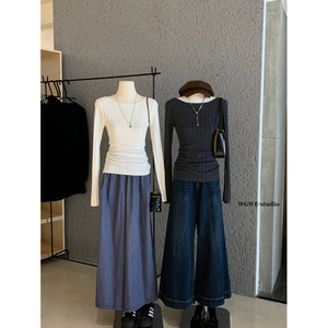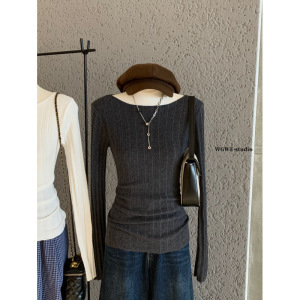 塞纳WGWE7087早秋新款简约百搭高级感修身显瘦针织打底衫内搭小衫