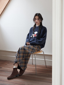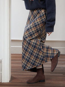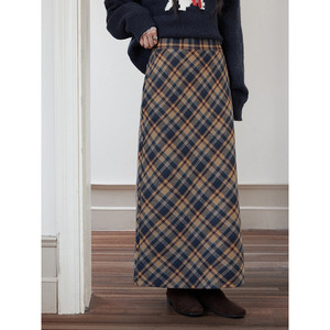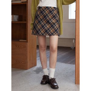 【约克黄昏格 毛呢长短款】歌铭复古撞色格纹毛呢半身裙女T3014F