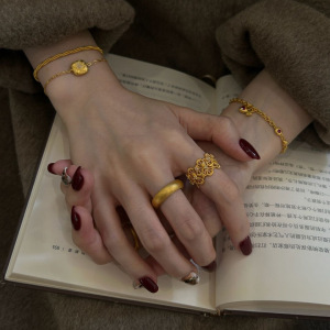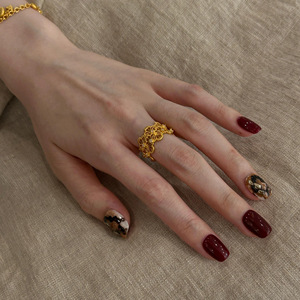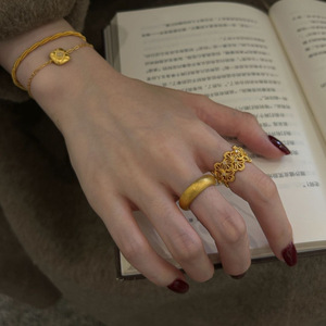S925纯银镶钻蕾丝泥鳅背戒指女中古风复古轻奢小众设计小红书指环