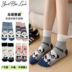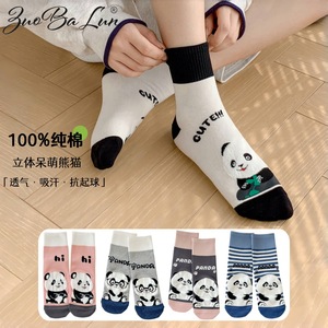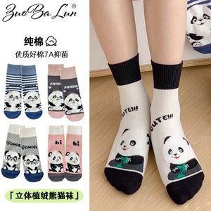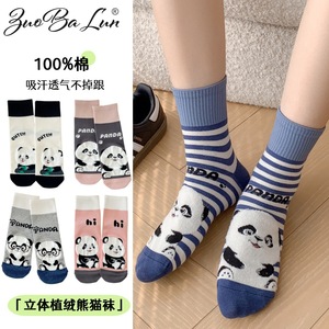 袜子女秋冬中筒袜卡通可爱网红熊猫长筒袜纯棉抗菌防臭堆堆袜批发