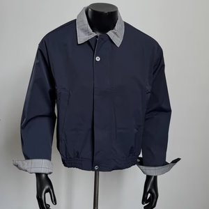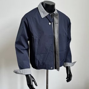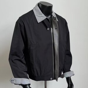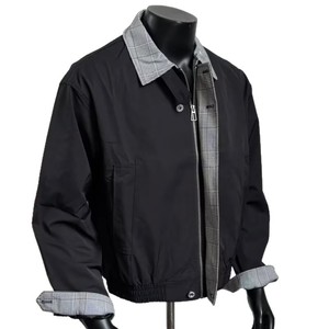 2025年秋季新款美式撞色格纹翻领工装极简宽松休闲藏青夹克外套男