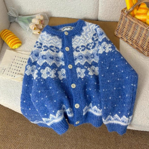 法式软糯慵懒松弛感针织开衫女2025秋冬新款超好看印花毛衣外套潮