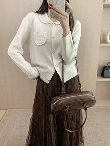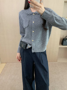 秋冬新款全羊毛开衫女翻领宽松显瘦毛衣外套设计感小众针织衫上衣