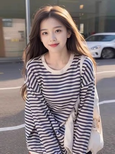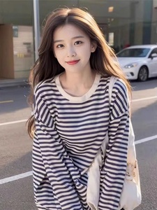 设计感小众条纹卫衣2025早秋新款内搭打底衫宽松慵懒风长袖上衣女