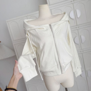 把妹王 超舒服秋日一字肩白色连帽卫衣