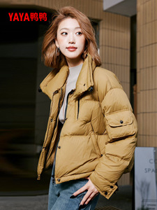 鸭鸭羽绒服女2025年冬季新款短款立领宽松潮流时尚休闲外套M