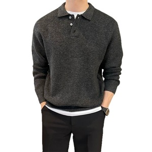 复古秋冬季韩版休闲针织衫慵懒风纯色套头长袖简约毛衣polo衫男