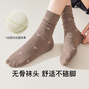 蝴蝶结袜子女秋季中筒袜ins潮日系复古美拉德咖色堆堆袜秋季棉袜