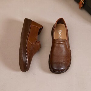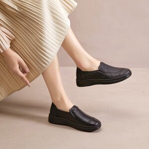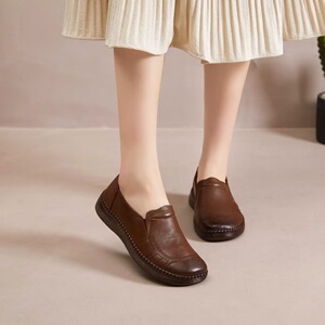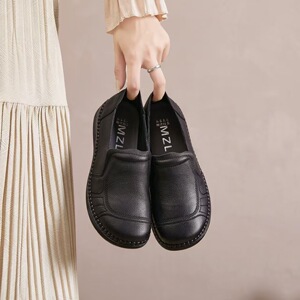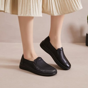 真皮妈妈鞋女2025新款头层牛皮软底中老年女士皮鞋一脚蹬平底单鞋