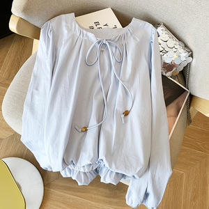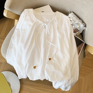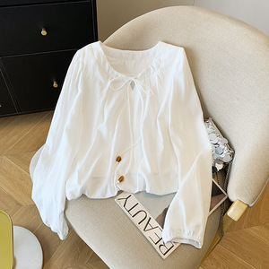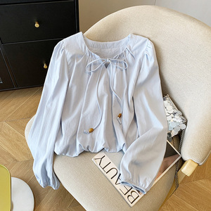 广州十三行高货爆款~花苞串珠系带衬衫女2025秋季新款温柔上衣ins