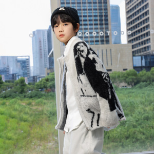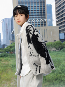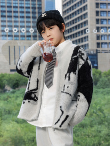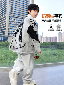 熊猫圆圆秋冬新款儿童毛衣 2025秋装儿童保暖外套仿貂毛针织开衫