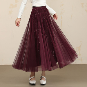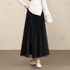 洋气时尚半身裙女2025年秋季新款韩版松紧腰气质女亮片网纱a字裙