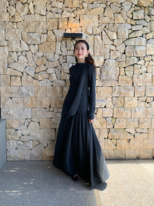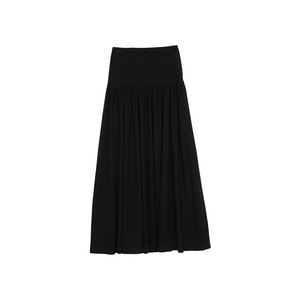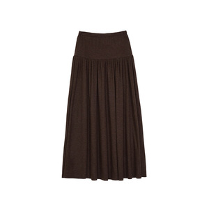 万为 法式大摆长裙女2025秋季新款垂坠感松紧腰褶皱半身裙Y6033-1