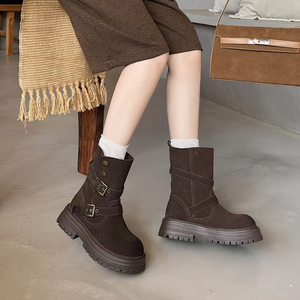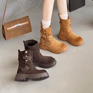厚底马丁靴女2025新款秋季复古英伦风百搭两穿小个子瘦瘦靴短靴女