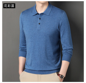 2025跨境秋季主推新款商务休闲长袖翻领羊毛纯色POLO领针织羊毛衫
