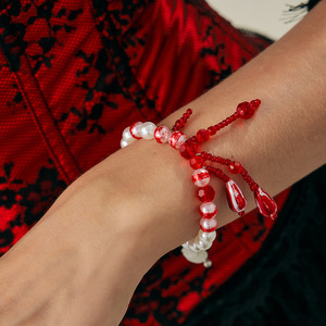 欧美跨境法式宫廷多层仿珍珠染血锁骨项链 ins万圣节滴血流苏项饰