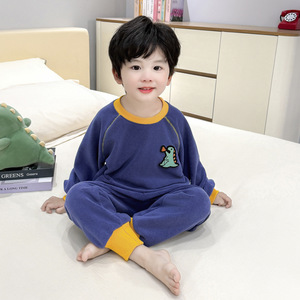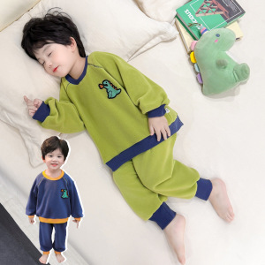 男童睡衣套装秋冬款宝宝奥粒绒保暖家居服两件套男孩法兰绒儿童