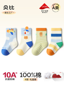 贝比宝宝袜子男秋冬款纯棉新生婴幼儿秋季无骨中筒袜小月龄不勒腿