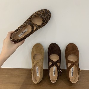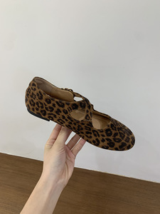 法式复古交叉带圆头玛丽珍鞋2025秋季新款配裙子豹纹芭蕾舞单鞋女