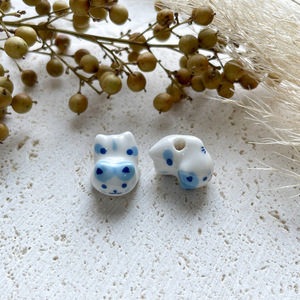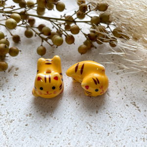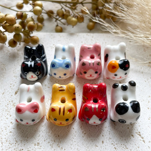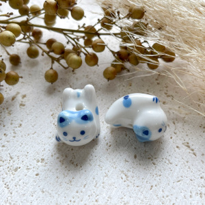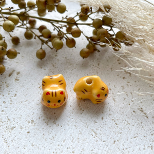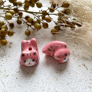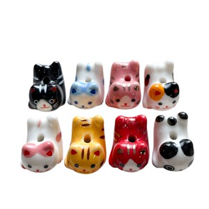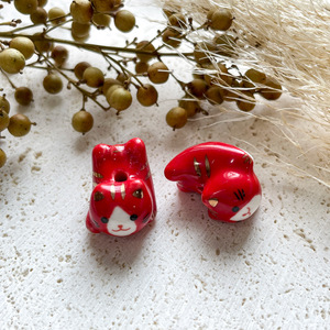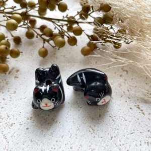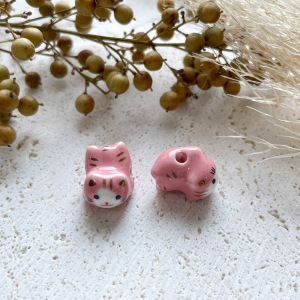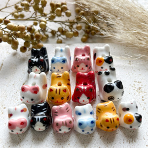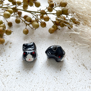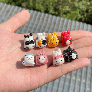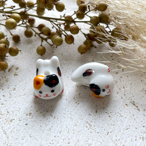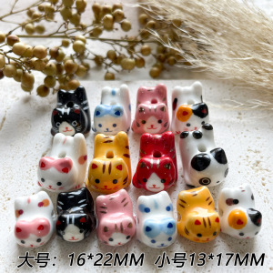 招财猫立体小猫陶瓷串珠直穿孔小配件diy手机链手串挂坠装饰材料