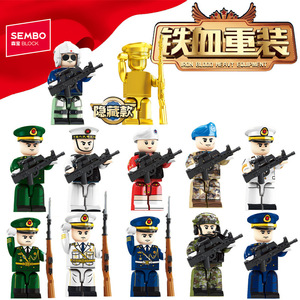森宝军事典礼海军空军陆军少将拼装积木人仔军事坦克模型玩具
