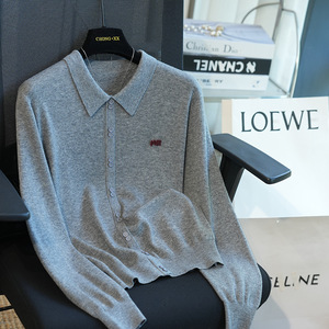 2025秋季绵羊毛混纺翻领宽松长袖套头针织衫女毛衣外套新602912