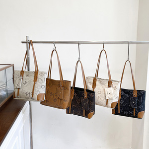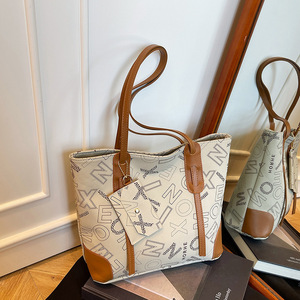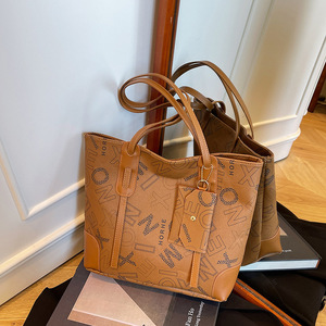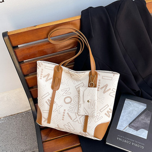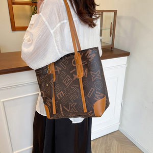 新款大容量时尚复古字母三件套2025夏季托特单肩手提腋下包包女