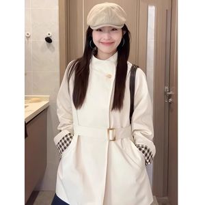 白色立领风衣外套女2025春秋新款中长款小个子感韩系休闲