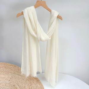 韩版纯色人棉围巾薄款百搭秋冬护颈保暖丝巾春夏出游防晒大披肩女
