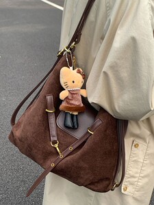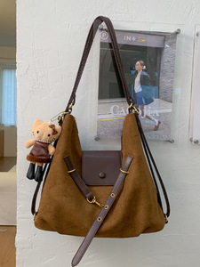 跨境高级感麂皮绒大容量托特包女新款多功能背包通勤大容量单肩包
