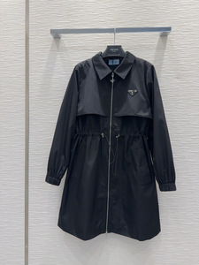 正确版本现货P家25三角标长款收腰冲锋衣夹克外套女工装风衣外