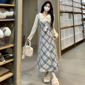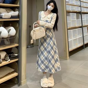 【原版面料】学院风蕾丝长袖假两件连衣裙2025年秋冬新款高腰长裙
